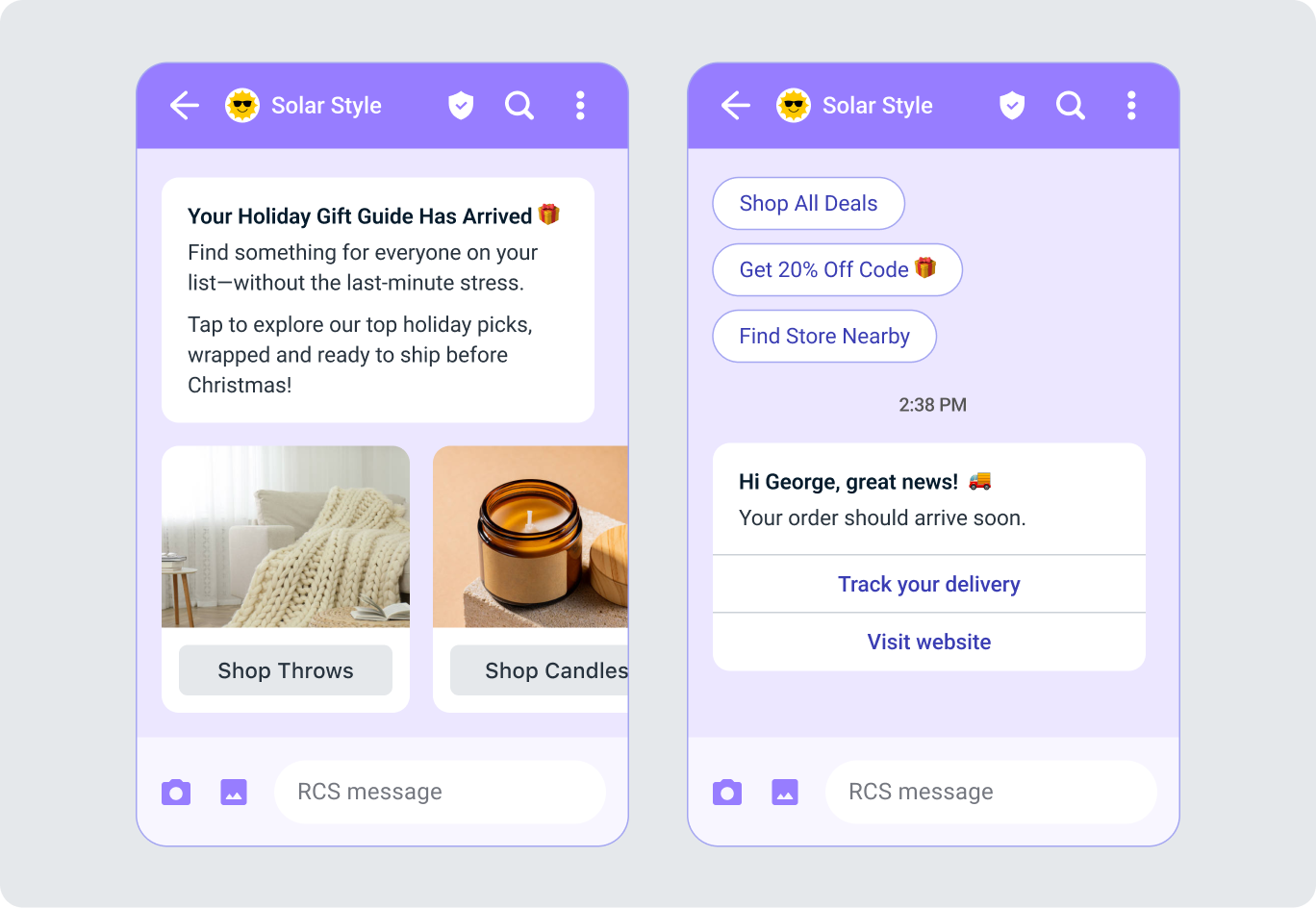 RCS brings the interactivity and design polish of an app into the messaging thread your users already trust. And that shift, from plain text to truly interactive messaging, is changing how mobile brands think about engagement this holiday season.